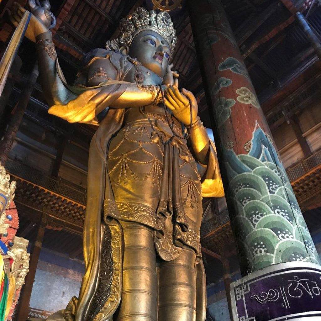 Manastırda önce, dünyadaki sayılı büyük buda heykellerinde biri kabul edilen, heykeli görmeye gittik. Buradaki büyük buda heykelinin boyu yaklaşık 28 m, bakırdan yapılmış, üzeri altınla kaplanmış, 90 ton ağırlığında. Ayrıca buradaki dua çarkları da çok ilgi çekici. Çark sırasının en başından başlayarak, olduğu yerde dönen çarkları, çevirerek gidiyorsunuz. Böylece o çarkın üzerinde yazan duayı okumuş sayılıyordunuz.
